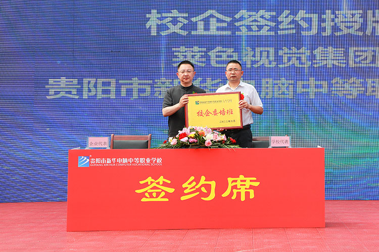 隨后,貴陽市新華電腦中等職業(yè)學(xué)校分別貴州青年體育協(xié)會、貴州星羽企業(yè)管理有限公司、貴陽建筑勘察設(shè)計有限公司、貴州航睿超翔信息技術(shù)有限公司、萊色視覺集團進行了校企委培授牌。校企委培建立企業(yè)訂單班,將企業(yè)先進的技術(shù)引入教學(xué)場景,訂單式培養(yǎng)互聯(lián)網(wǎng)人才,使得新華學(xué)子的就業(yè)平臺和渠道更加豐富,就業(yè)空間更加廣闊。