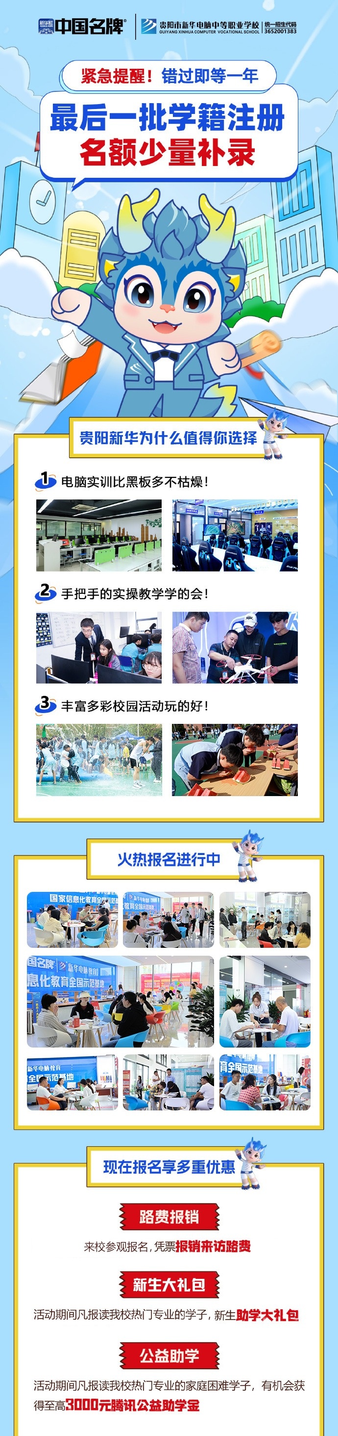 看著周圍的小伙伴開啟新的學(xué)習(xí)生活,你還沒擇校?不要驚慌,貴陽市新華電腦中等職業(yè)學(xué)校秋季最后一批學(xué)籍補錄開啟,各專業(yè)所剩名額不多。