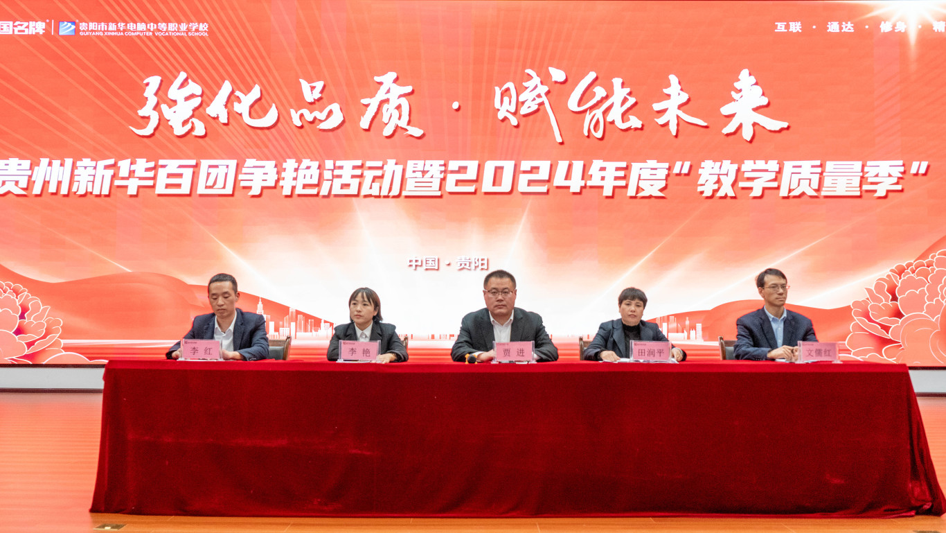 為進一步完善學(xué)校教育教學(xué)管理,提升教學(xué)質(zhì)量,打造職業(yè)化校園文化氛圍,促進教育教學(xué)創(chuàng)新,并創(chuàng)建優(yōu)良的教風(fēng)、學(xué)風(fēng)和校風(fēng),2024年11月1日,貴陽市新華電腦中等職業(yè)學(xué)校隆重舉行百團爭艷活動暨2024年度“教學(xué)質(zhì)量季”啟動儀式。