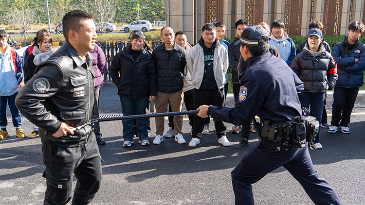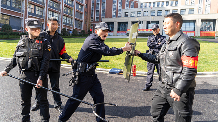 演習(xí)中,小孟派出所的民警們向師生們展示了各種安全工具的使用方法,包括警棍、盾牌、抓捕器等。他們詳細講解了這些工具的功能、特點和使用場景,并現(xiàn)場進行了示范操作。