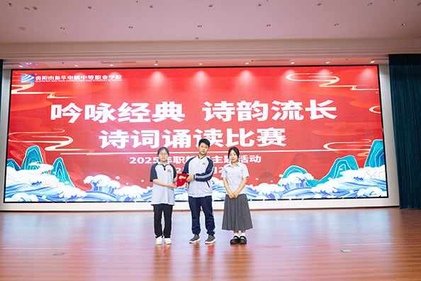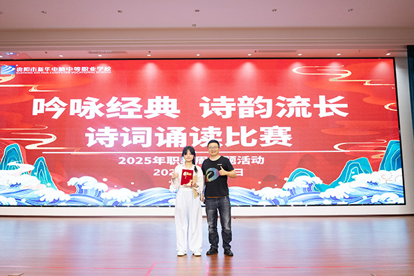 五月的風,攜著詩香;青春的聲,誦響華章。貴陽市新華電腦中等職業(yè)學校的學子們齊聚學術(shù)報告廳,以聲傳情,以詩會友,共同演繹了一場穿越千年的詩詞盛宴。比賽在激昂的旋律中拉開帷幕,同學們用鏗鏘有力的聲音,演繹了《月光下的中國》,一幅幅壯美山河的畫面仿佛在眼前徐徐展開。隨后,《沁園春·長沙》的豪邁之氣撲面而來,“問蒼茫大地,誰主沉浮?”——少年意氣,壯志凌云!而蘇軾的《水調(diào)歌頭》則帶我們穿越千年,感受“但愿人長久,千里共嬋娟”的深情與豁達。比賽在全體同學齊誦《行路難》的豪邁聲中落下帷幕。“長風破浪會有時,直掛云帆濟滄海!”李白的詩句激勵著每一位新華學子——前路或許艱難,但只要心懷詩與遠方,終能抵達理想的彼岸。